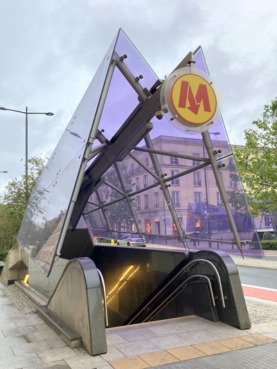 By the entrance to a subway station in downtown Warsaw